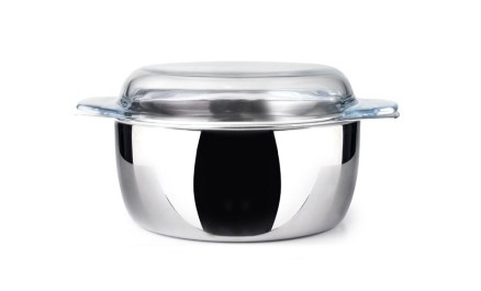 Freidora fabricadoa en Acero inoxidable 18% con cestillo de acero inoxidable 18/10 y tapa de borosilicato.
